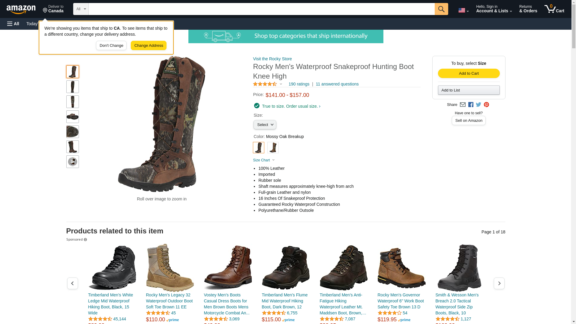 If you're not prepared, a run in with any wild animal has the potential to turn ugly, especially with snakes. The Rocky ProLight Waterproof Snakeproof Hunting Boot will ensure your personal safety. They protect against most North American snakes; including rattlesnakes, copperheads, and coral snakes.To keep your feet, ankles, and lower legs safe, these hunting boots are designed with sixteen inches of snakeproof protection. Plus, they keep your feet dry in any condition. A full-grain leather outlines the Mossy Oak camouflage nylon, a material reinforces the Guaranteed Rocky Waterproof construction.The ProLight BioMech outsole provides traction and stability on uneven terrain, and the PU/Rubber outsole adds a second layer of defense against wet feet.Remain safe and dry in these snake proof boots.