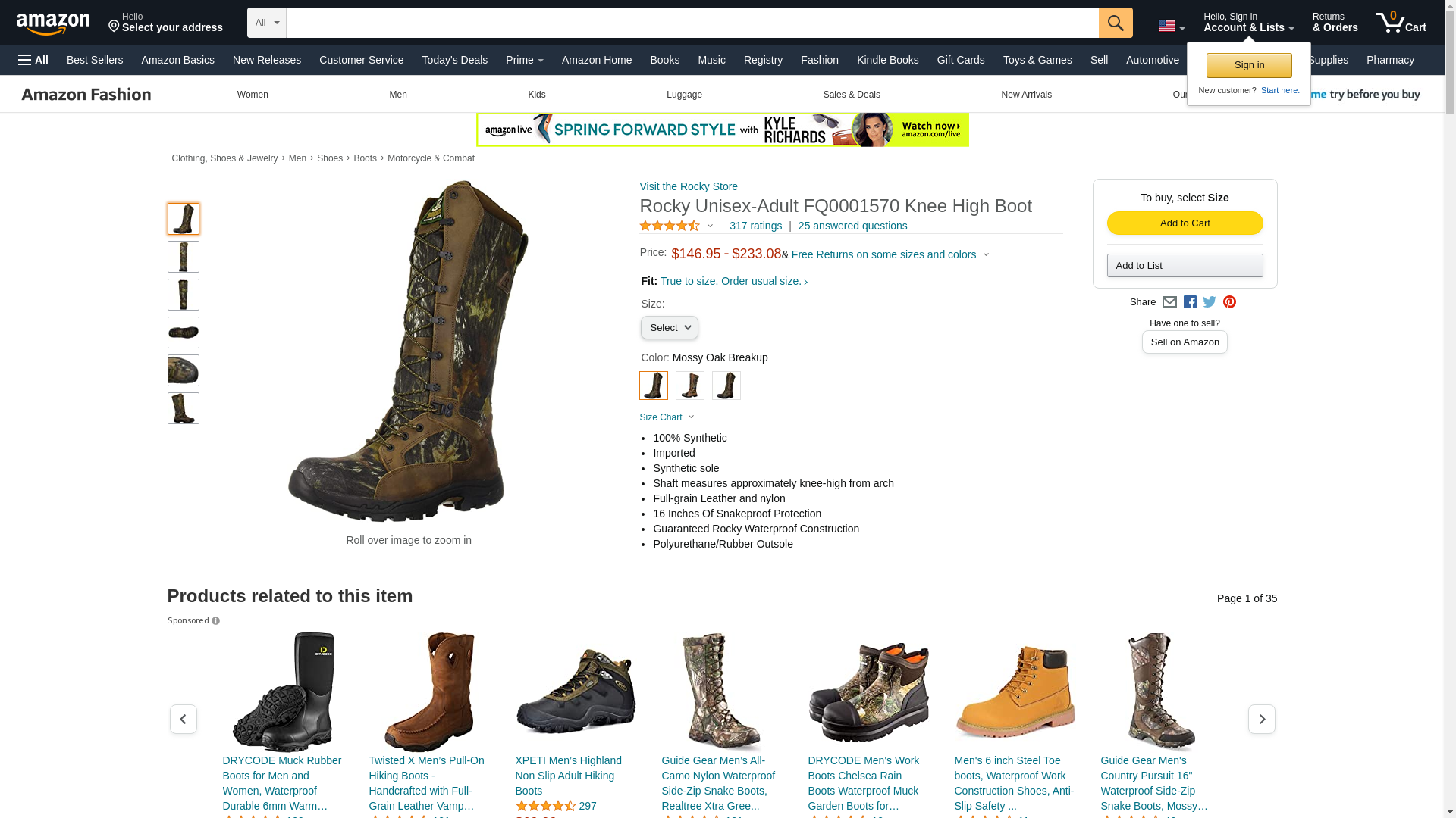 Rocky Boots are built to outlast, outperform, and flat out impress The Rocky ProLight hunting boot features Mossy Oak Break-Up Infinitycamo, Cordura nylon and leather construction. Tall 16" lace up shaft gives you ample protection. Quick and easy speed hooks. Rocky waterproof construction combines a waterproof inner layer with a waterproof upper. The waterproof layer covers the entire length and height of the boot, ensuring complete waterproof work boot protection. Breathable mesh lining. Round toe. Block heel. Secure footing rubber sole. Imported.