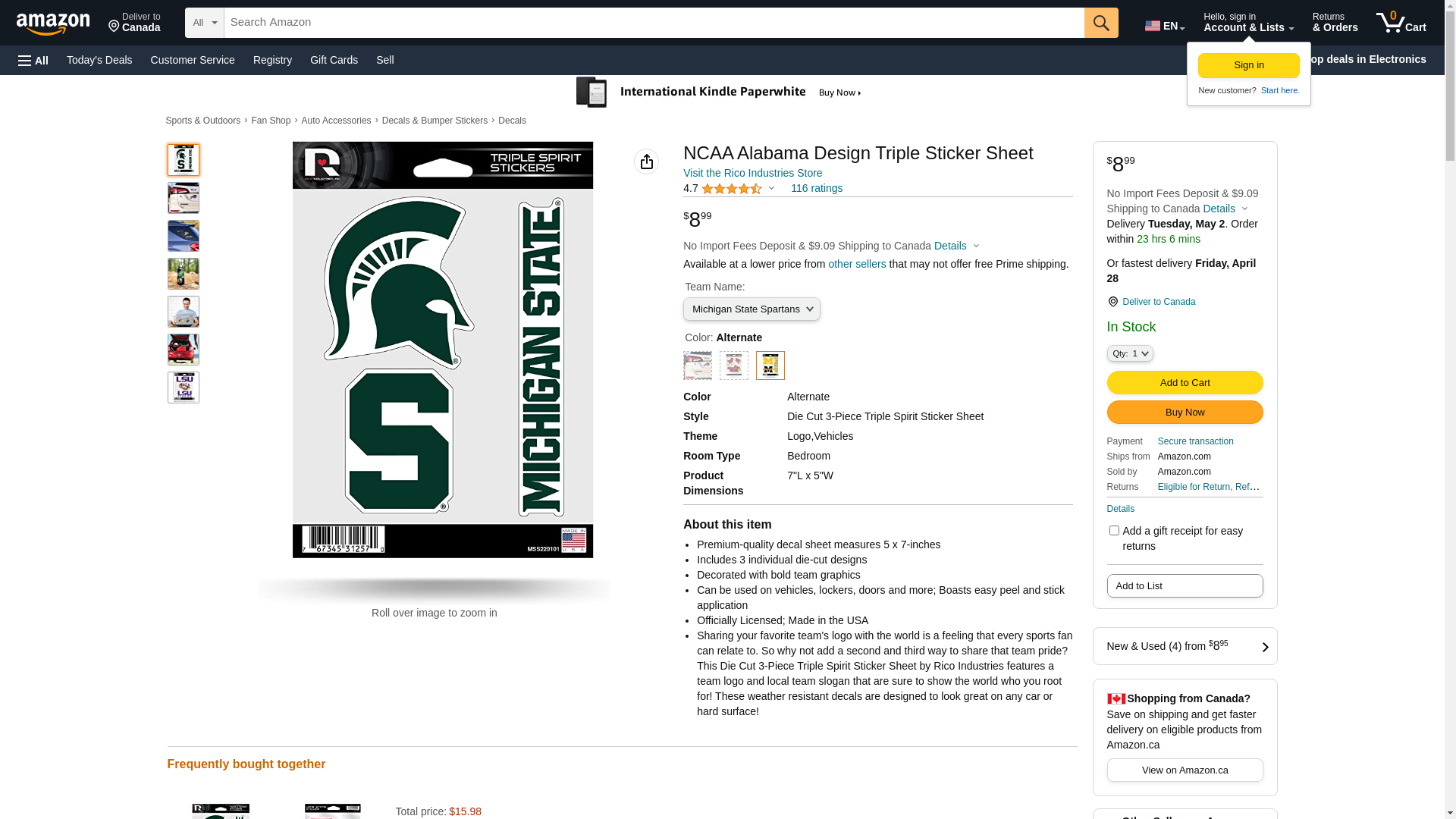 Rico Industries NCAA Michigan State Spartans Die Cut Triple Spirit Sticker Sheet, One Size, Alternate, 3-Piece
