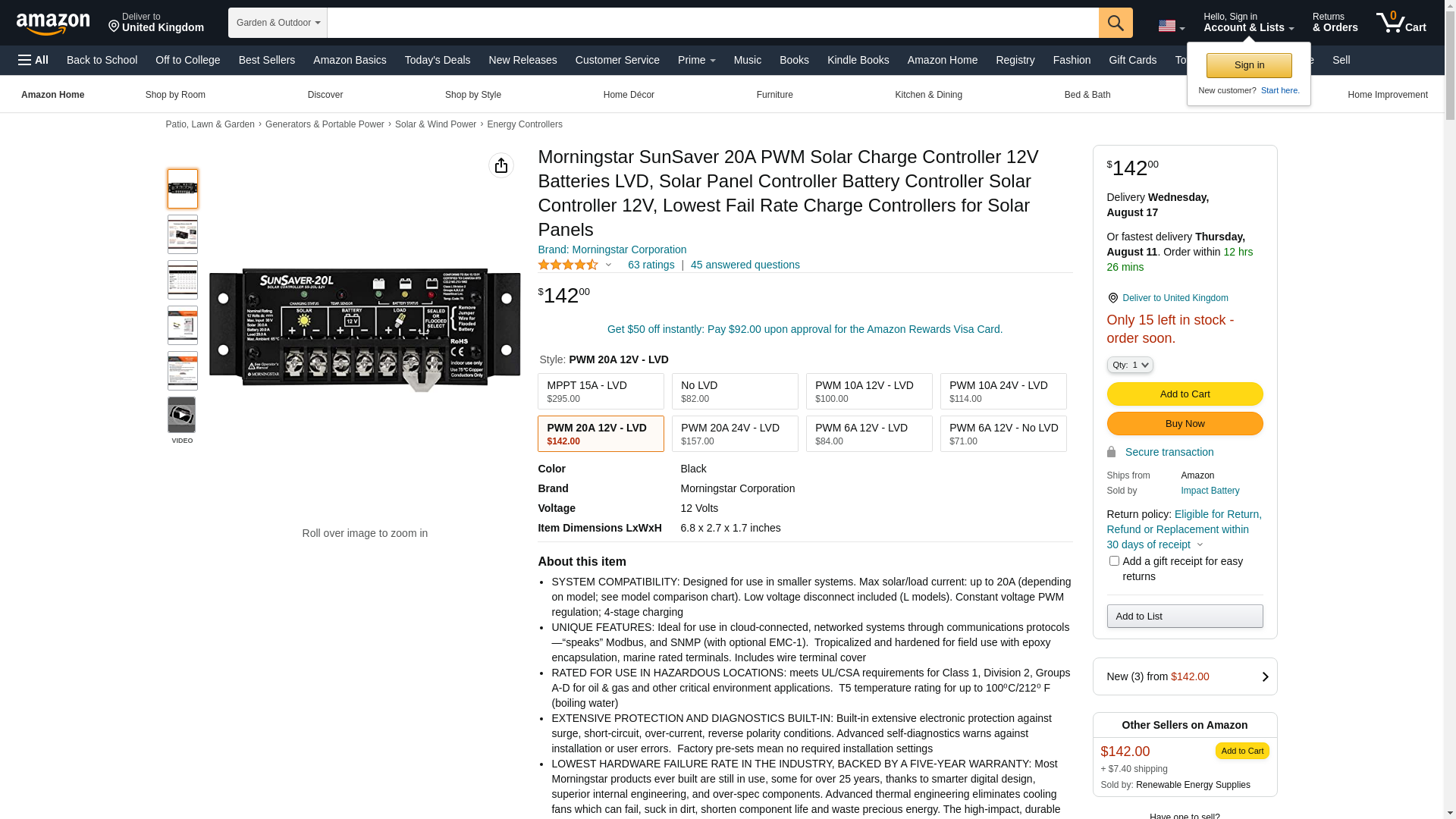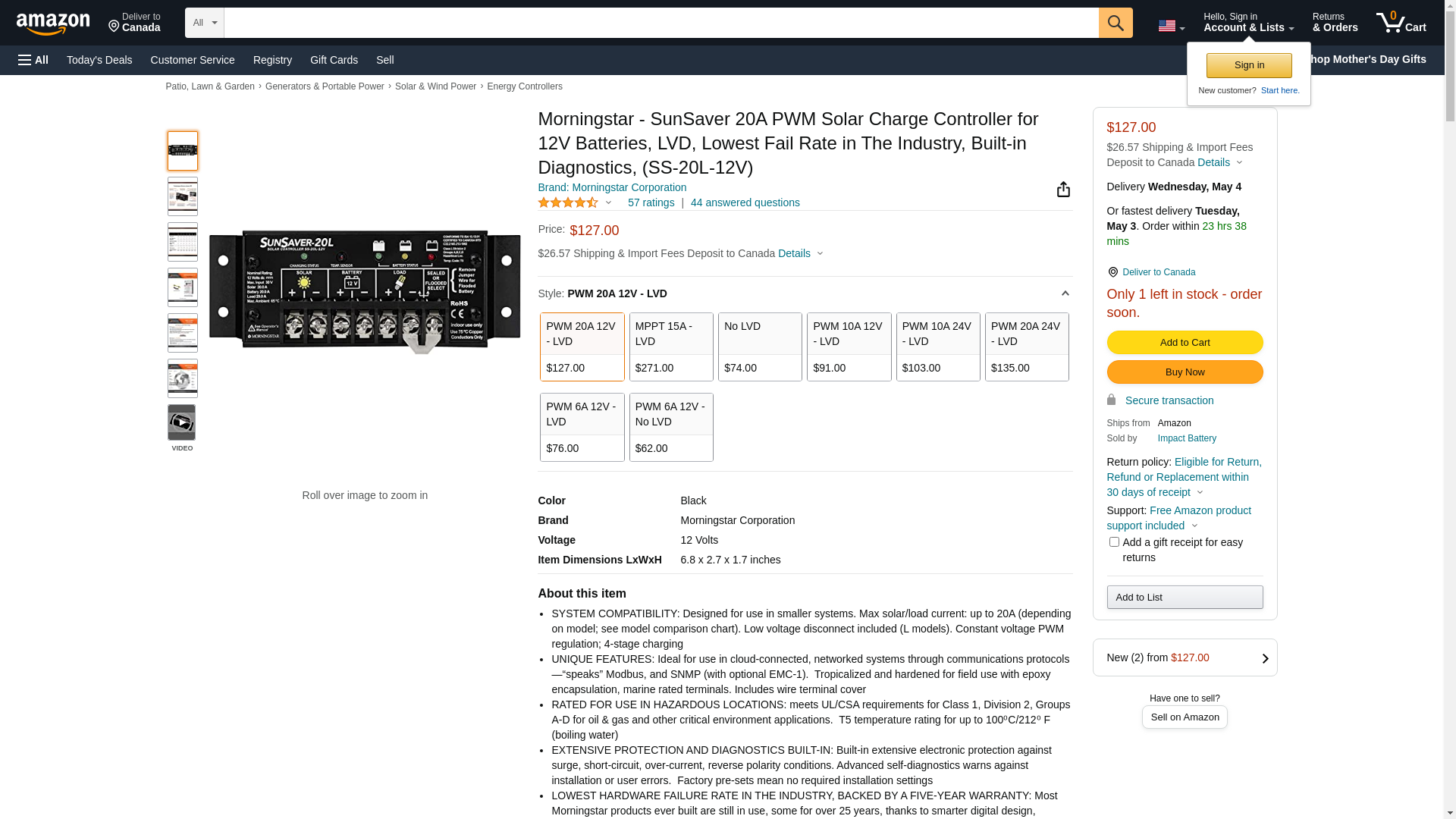 | rspsupply.com | MORNINGSTAR SS-20L-12V | 1 | -2 | 1 | 1 @ $148.15 |