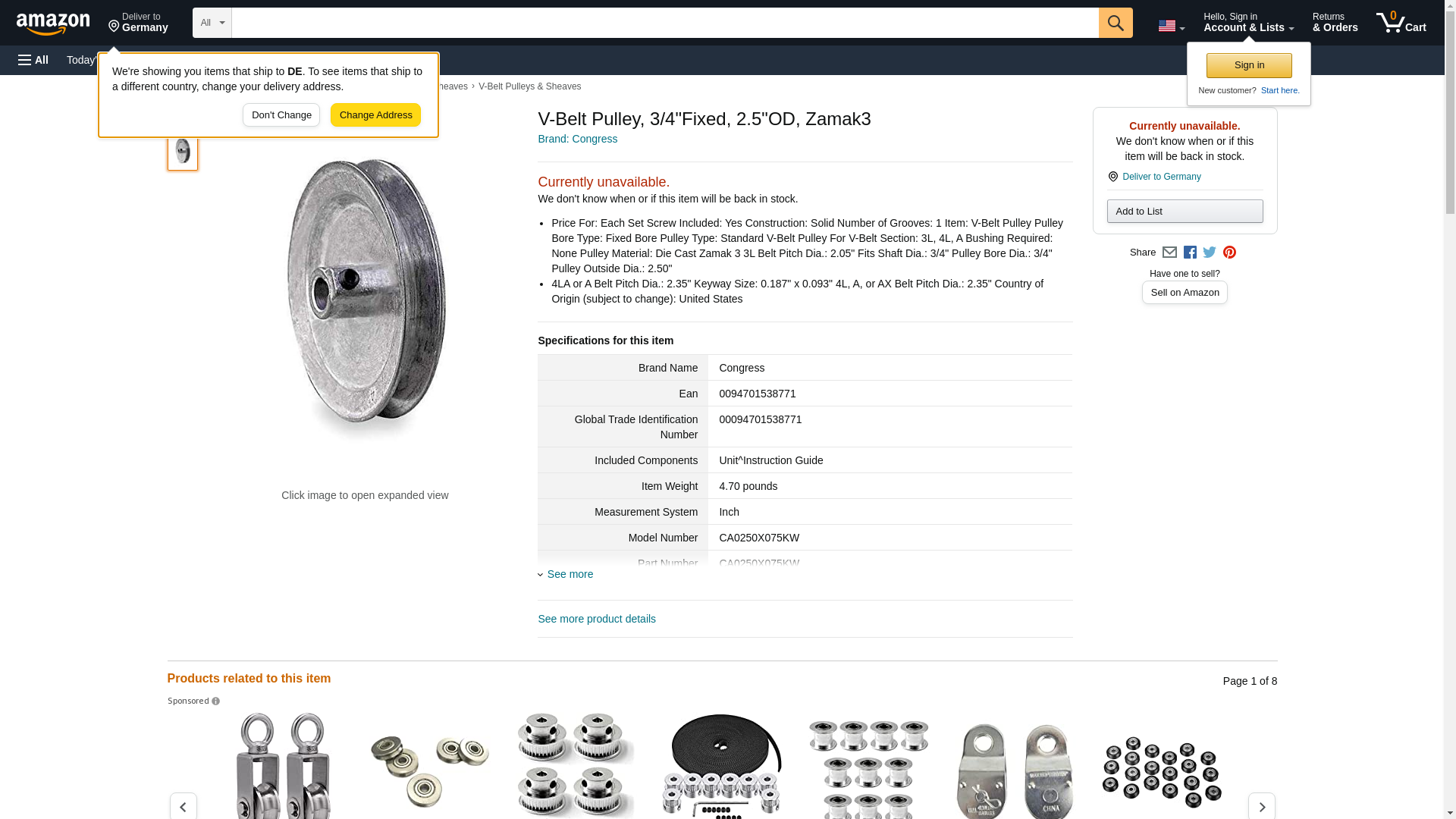 Congress V-Belt Pulley,Finished,0.75in,0.625in CA0250X075KW ZO-G4446226 - SIM Supply