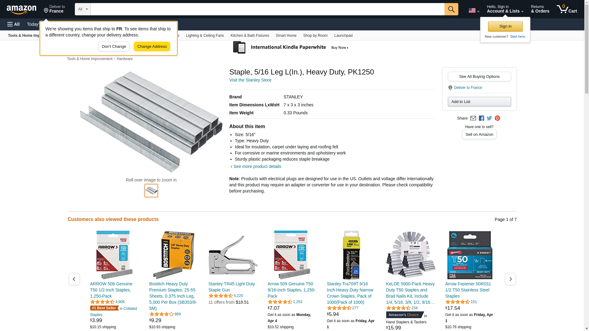 | Feature | Price For: Each Item: Staple Crown Width (In.): 27/64 Construction: Steel Color: Silver Package Quantity: 1250 Type: Heavy Duty Leg Length (In.): 5/16 Country of Origin (subject to change): China |