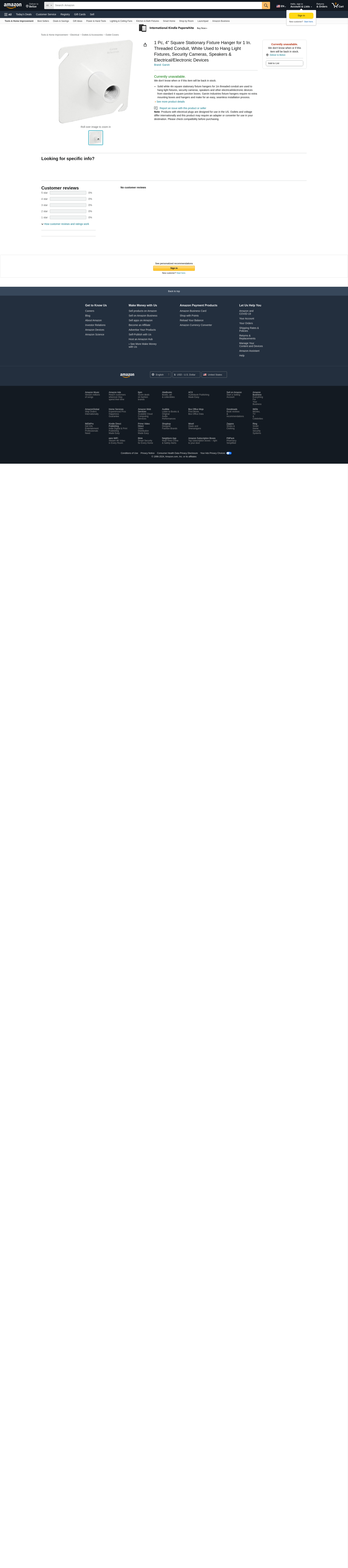 1 Pc, 4" Square Stationary Fixture Hanger for 1 In. Threaded Conduit, White Used to Hang Light Fixtures, Security Cameras, Speakers & Electrical/Electronic Devices
