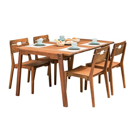 Otero Eucalyptus Wood Outdoor Dining Table with 4 Dining Chairs