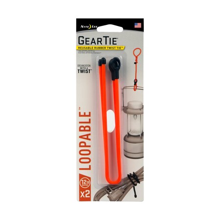 Nite Ize GLS12-31-2R3 Gear Tie Loopable, The Original Reusable Rubber Twist Tie with Sturdy Integrated Loop, 12 Inch, Bright Orange, 2-Pack, Made in The USA