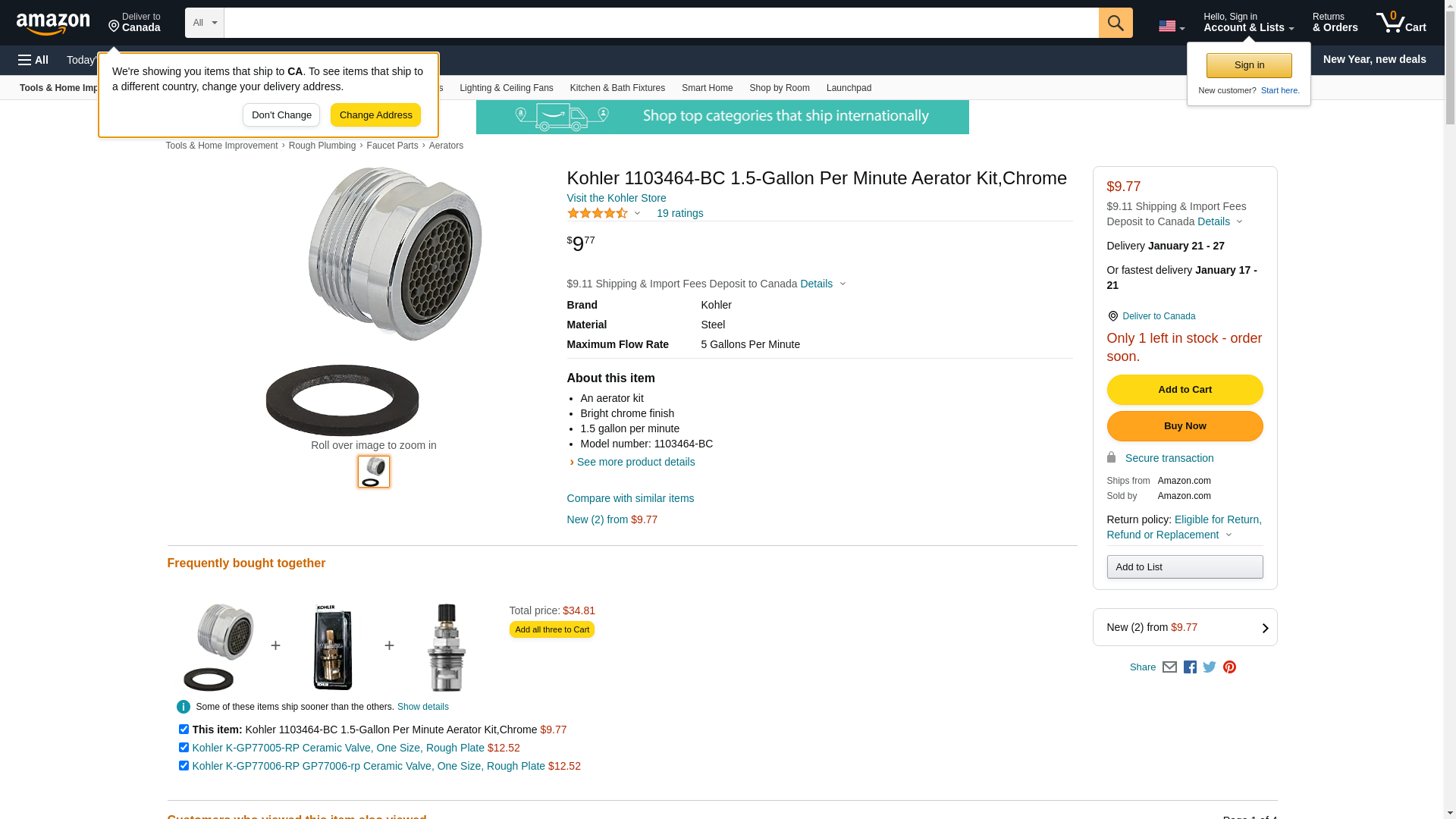 Kohler 1103464-BC 1.5-Gallon Per Minute Aerator Kit,Chrome