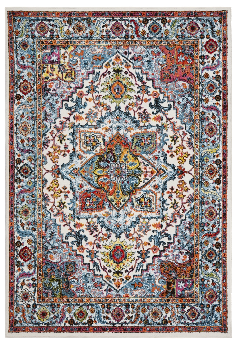 LR Home FUSIO81346WHT7995 Fusion Modern Oriental Indoor Area Rug, White & Blue - 7 9 x 9 ft. 5 in.