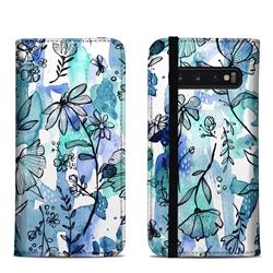 DecalGirl SGS10FC-BLUEINK Samsung Galaxy S10 Folio Case - Blue Ink Floral