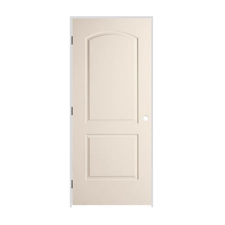 36" x 80" x 1-3/8" Primed 2-Panel Arch Top Caiman Molded Hollow Core 6-9/16" RH Prehung Door