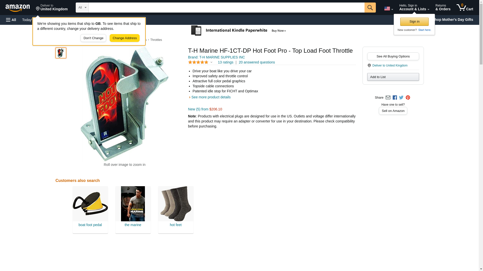 T-H Marine HF-1CT-DP Hot Foot Pro - Top Load Foot Throttle