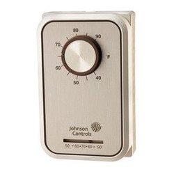 Johnson Controls T22SFB-1C Penn Series T22 Line Voltage Wall Thermostat, Heating and Cooling, Knob Adjustment, SPDT Application, Separate Load, Heat-Off-Cool Switch, 1 & 1.3°C Differential