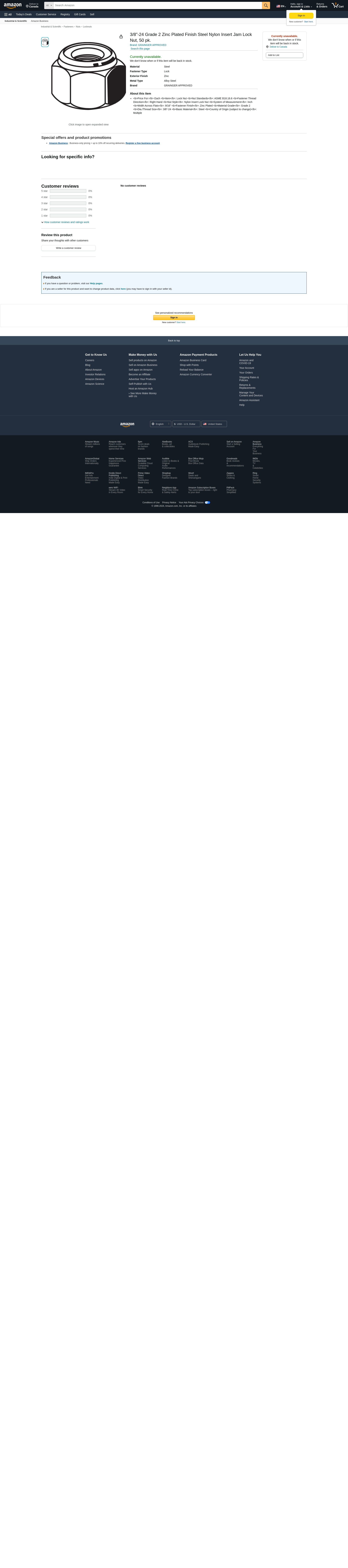 'Jam Lock Nut, Nut Style Nylon Insert Lock Nut, System of Measurement Inch, Steel, Fastener Finish Zinc Plated, Fastener Thread Direction Right Hand, Fastener Thread Type UNF, Dia./Thread Size 3/8 In.-24, Material Grade Grade 2, Width Across Flats 9/16 In., Nut Height 15/32 In., Nut Standards ASME B18.16.6, Package Quantity 50'