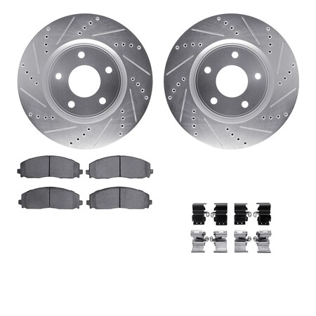 7512-40093, Rotors-Drilled and Slotted-Silver w/ 5000 Advanced Brake Pads incl. Hardware, Zinc Coat