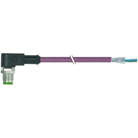 Harting M12 B-Code Overmolded Cable Assembly, 2Pin, Angled Male To Flying Leads, Pur Violet, 1.5M - 21035493301