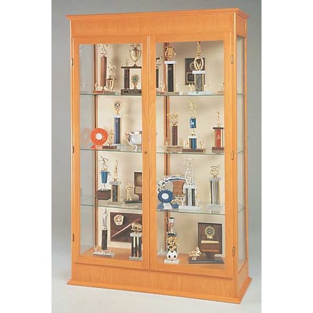 Waddell Varsity Hinged Doors Lighted Display Case, 48W by 77H by 18" D, Plaque Back with Autumn Oak Finish