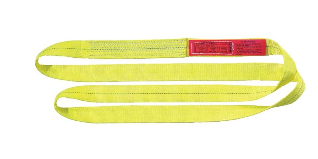 The economical web slings for lighter duty use. Wider bearing surface per capacity helps protect load. Yellow abrasion treatment extends sling life. Red core yarns aid inspection. Polyester web stretches less, promotes load control. TUFF-TAG guarantee.