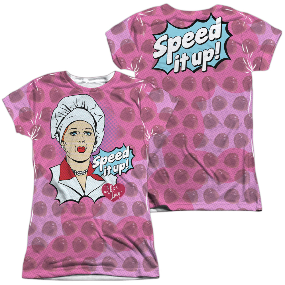 Trevco LB263FB-JSPP-2 I Love Lucy & All Over Speed It Up Front & Back Print Junior Cap Polyster Crew Neck Short Sleeve T