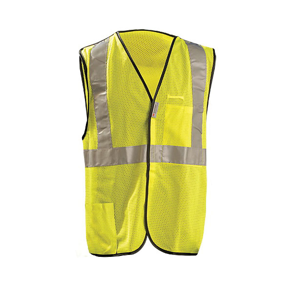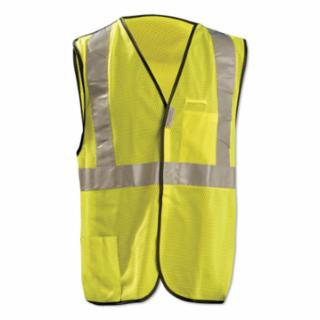 Class 2 premium breakaway mesh vestManufactured By: OccuNomixSize: XLLightweight, 100% ANSI polyester mesh with 2” 3M Scotchlite Reflective Material, (1) 360° horizontal and (2) vertical stripes.Features hook and loop closure at top, sides and front that breakaway when tugged with moderate force to help prevent workers from being caught and pulled.Includes (1) outside lower pocket and (1) inside chest pocket with hook and loop closure.Yellow.ANSI 107-2010 Class 2 compliant.Additional sizes available.