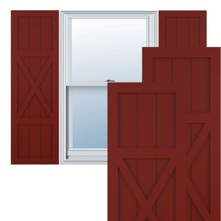 Ekena Millwork TFP107FH18X073MR True Fit PVC Center X-Board Farmhouse Fixed Mount Shutters, (Per Pair-Hardware Not Included), 18"W x 73"H, Pepper Red