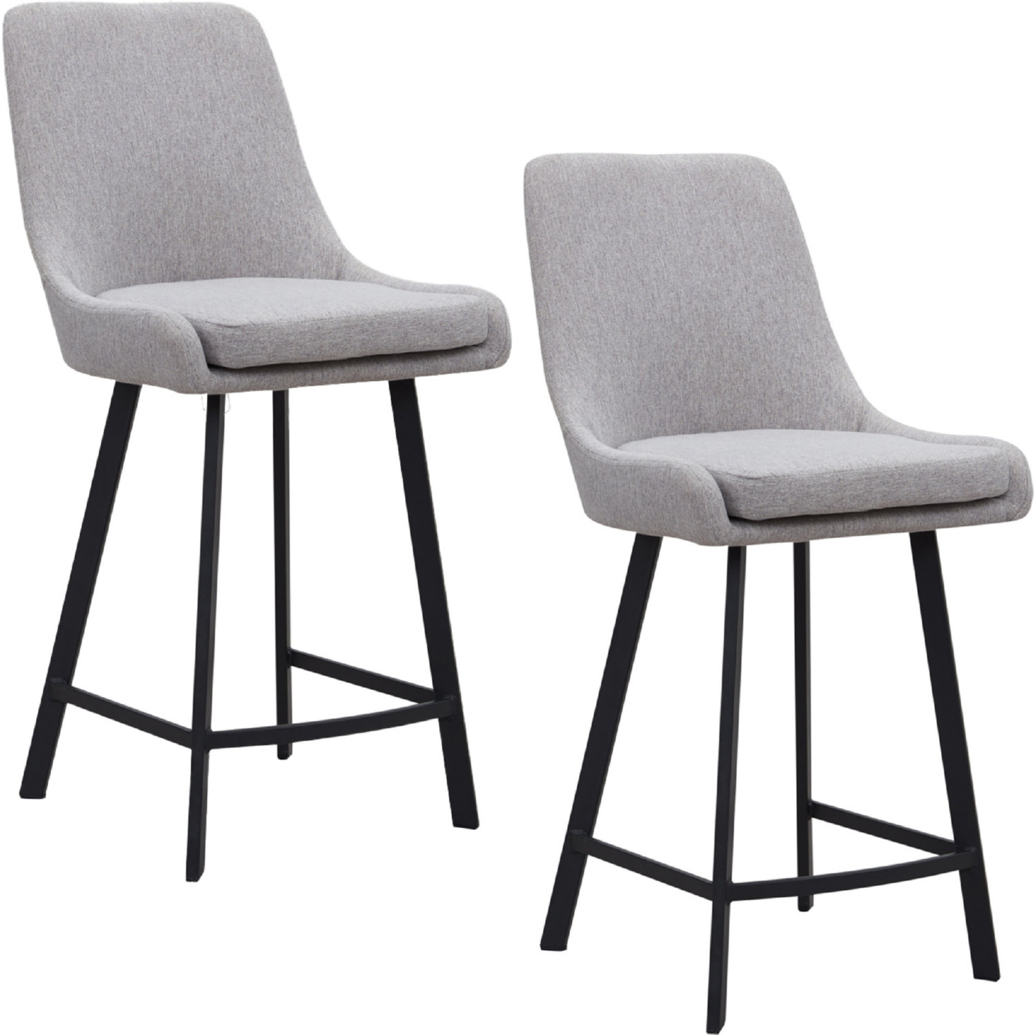 Leick Home 10144-BLGL Barrelback Counter Stool in Gray Linen & Black Steel (Set of 2)