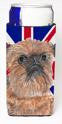 Caroline's Treasures SC9864MUK Brussels Griffon with English Union Jack British Flag Ultra Hugger for slim cans Can Cooler Sleeve Hugger Machine Washable Drink Sleeve Hugger Collapsible Insulator Beve