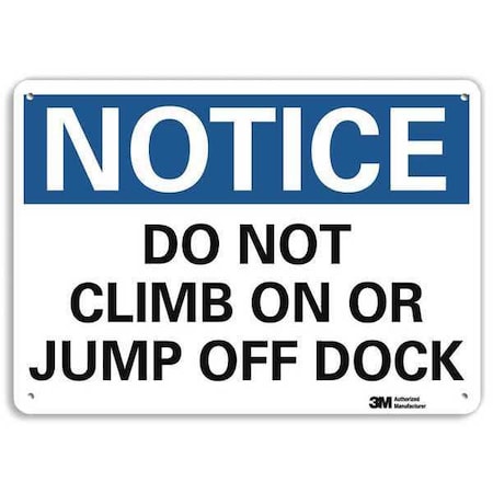 Notice Sign, Vertical Rectangle, Number of Printed Sides 1, English, Sign Format Traditional OSHA, Sign Legend Do Not Climb On or Jump Off Dock, Sign Legend Background Color White, Sign Legend Style Text