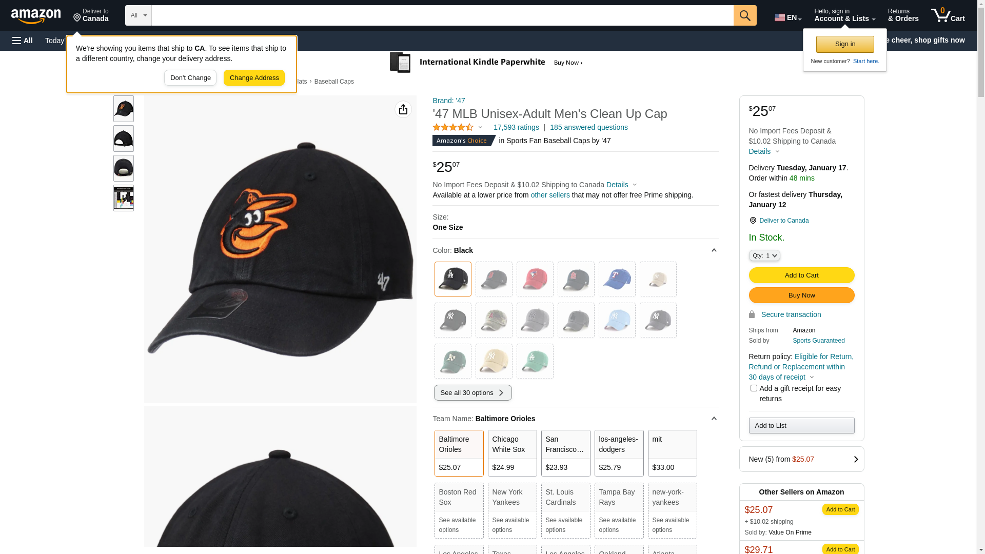 MLB Baltimore Orioles '47 Clean Up Adjustable Hat, Black, One Size