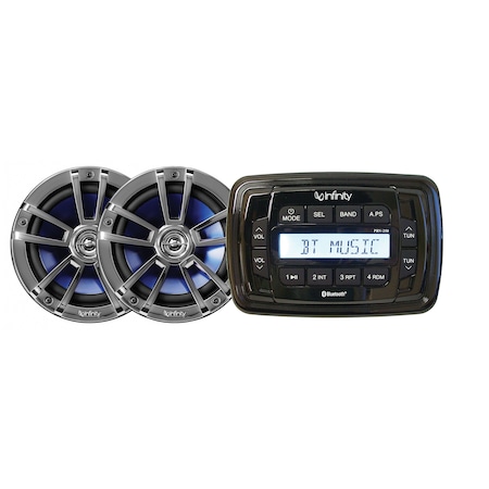 - INF-MPK250 model includes the INF-PRV250 receiver by Infinity, RCA outputs and two 6.5" Two-Way Marine Speakers by Infinity