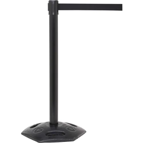 WeatherMaster 250 Retractable Belt Barrier, 40" Black Post, 11' Black Belt