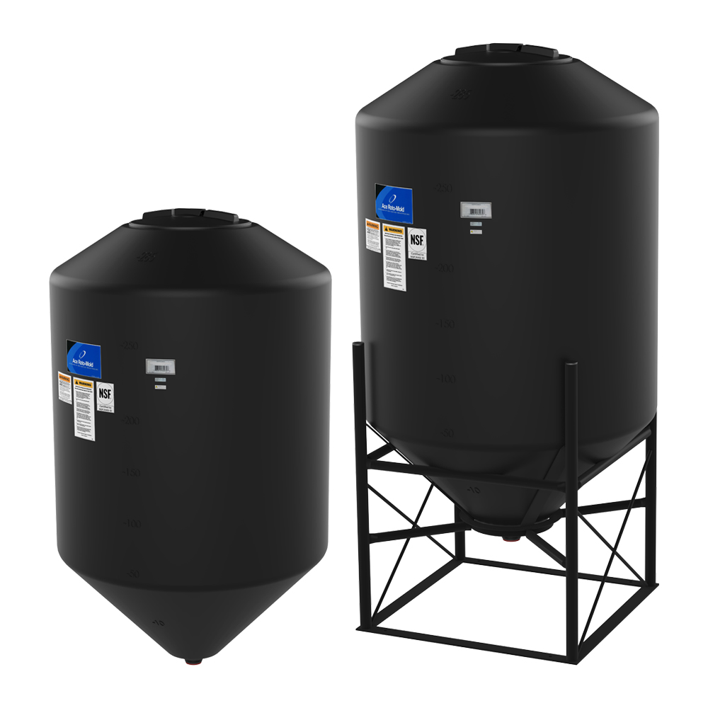 240 Gallon 45? Cone Bottom, Flat Top Black Tank w/12" Lid - 42" Dia x 59" Hgt.