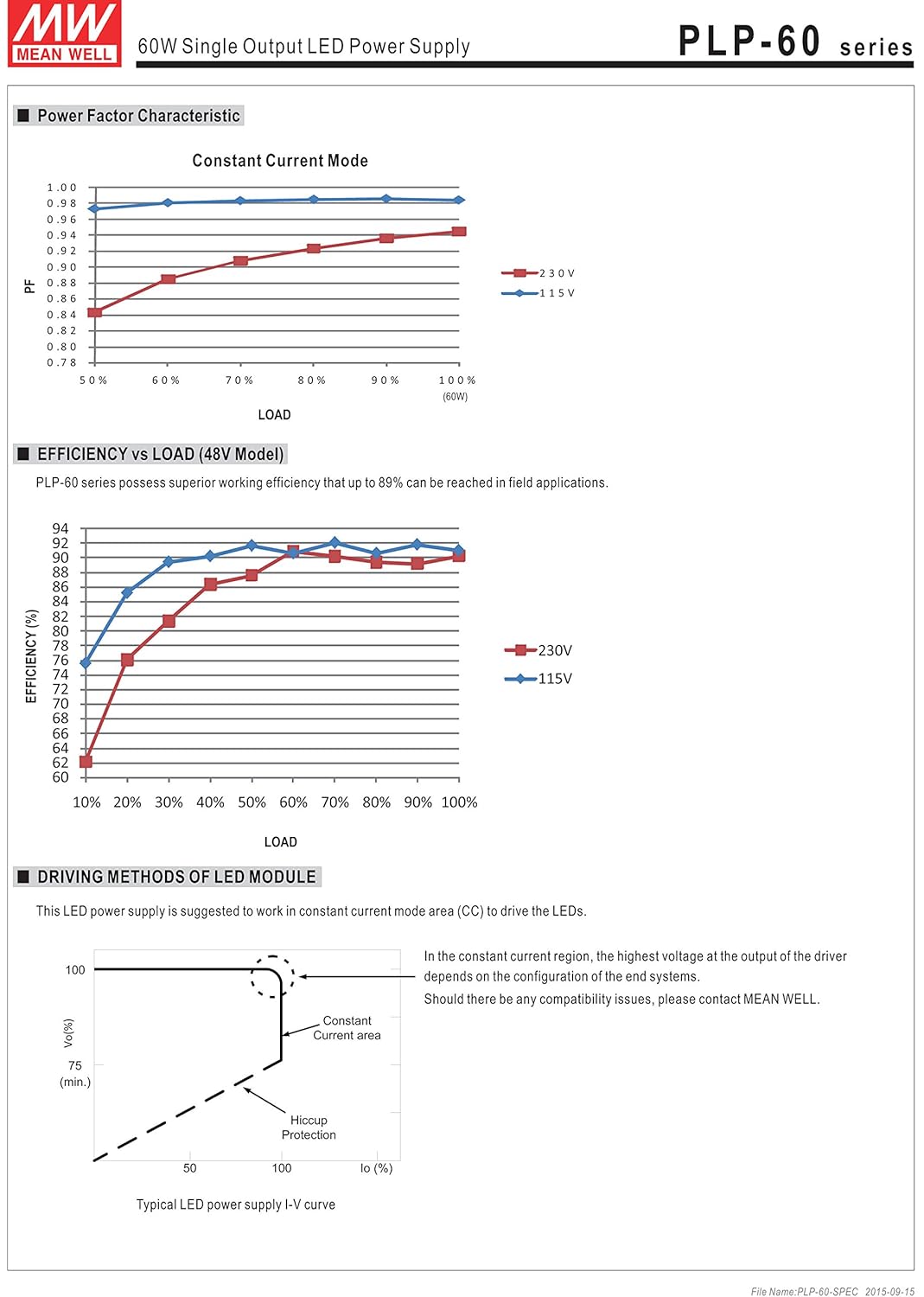 | Feature | Brand:MEAN WELL<br> Model:PLP-60-48<br>Output:LED 62.5W 48V 1.3A<br> |