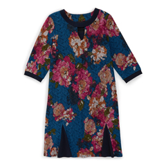 Silverts Women's Open Back Flounce 3/4 Sleeve Dress Denim/Fuschia - Silverts 21170_SV1434_M EA - Betty Mills