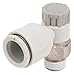 'Speed Control Valve, Elbow, Pipe Size 1/8 In., Tube Size 10mm, Connection BSPT x Tube, Body Size 1/8 In., Body Material Electroless Nickel-Plated Brass and PBT, Flow Out, Adjustment Knob, Pressure Range 14.5 to 145 psi, Temp. Range 23 Degrees to 140 Degrees F'