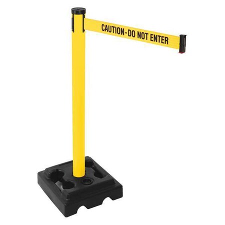 'Barrier Post with Belt, Post Material PVC, Post Finish Yellow, Post Height 40 In., Post Dia. 2-1/2 In., Base Type Square, Fillable, Base Dia. 15 In., Base Material HDPE, Base Finish Black, Number of Belts 1, Belt Length 10 ft., Belt Color Yellow with Black Text, Belt Message Caution Do Not Enter, Belt Width 2 In., For Use With SUB-ME SUB-SHOOK RE RE-M HPSC-24 VPSC-18 303PYW-RCV FR711DSSBSB FR811DSSBSB SBB, Indoor/Outdoor'