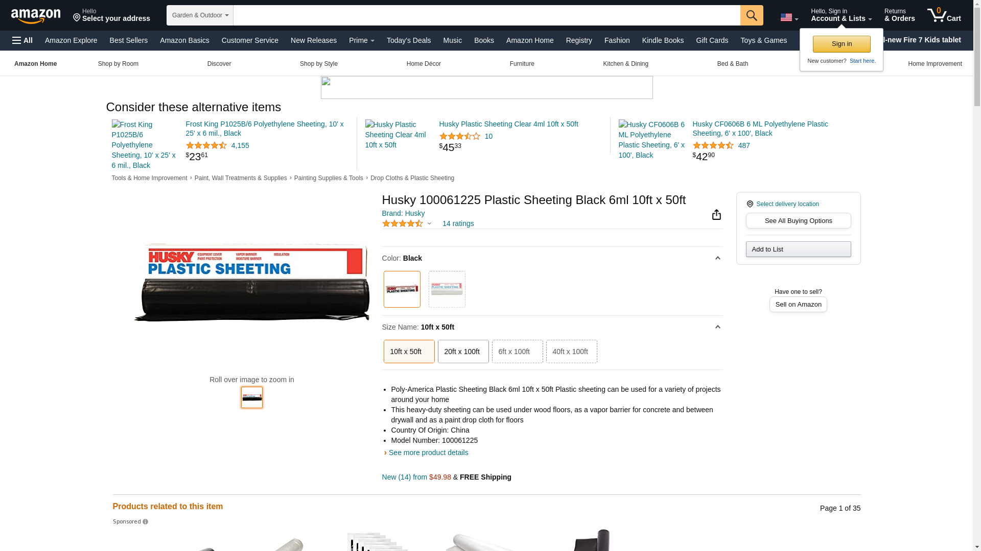 | Feature | Poly-America Plastic Sheeting Black 6ml 10ft x 50ft Plastic sheeting can be used for a variety of projects around your home |