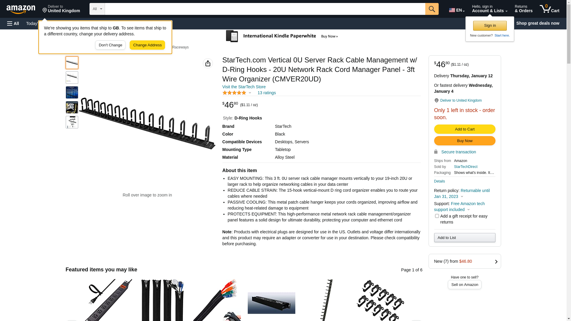 StarTech 0U 3ft Vertical Cable Organizer with D-Ring Hooks