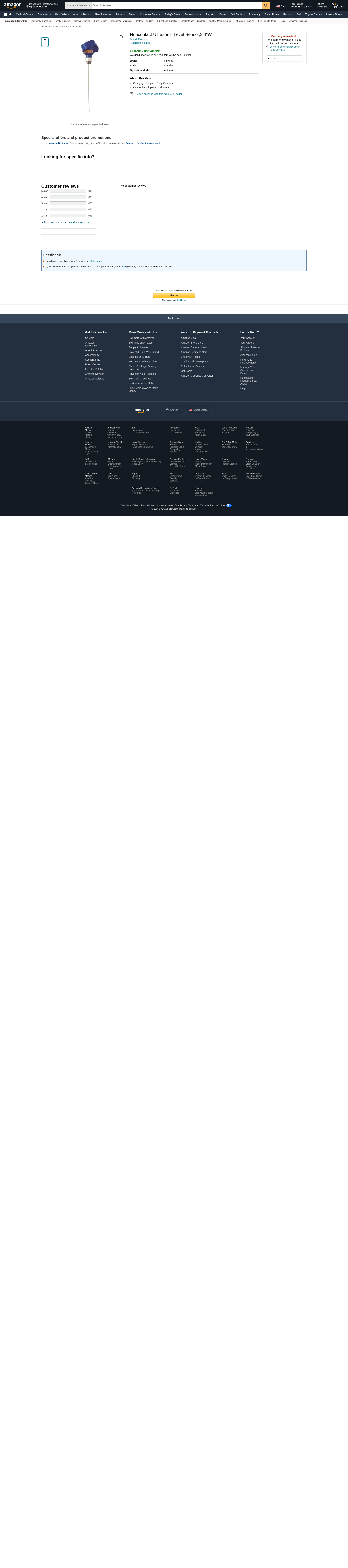 Noncontact Ultrasonic Level Sensor, n/a, n/a Orientation, Accuracy +/-3mm, Repeatability n/a, Input Voltage 10-30VDC, Output 4 to 20mA, 3-Wire, 3/4 In. NPT Mounting, Width 3.4 In.