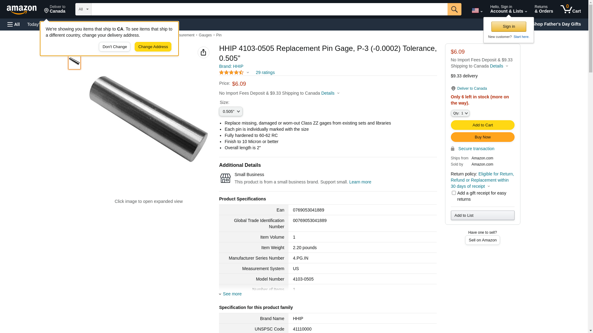 HHIP 4103-0505 Replacement Pin Gage, P-3 (-0.0002) Tolerance, 0.505"