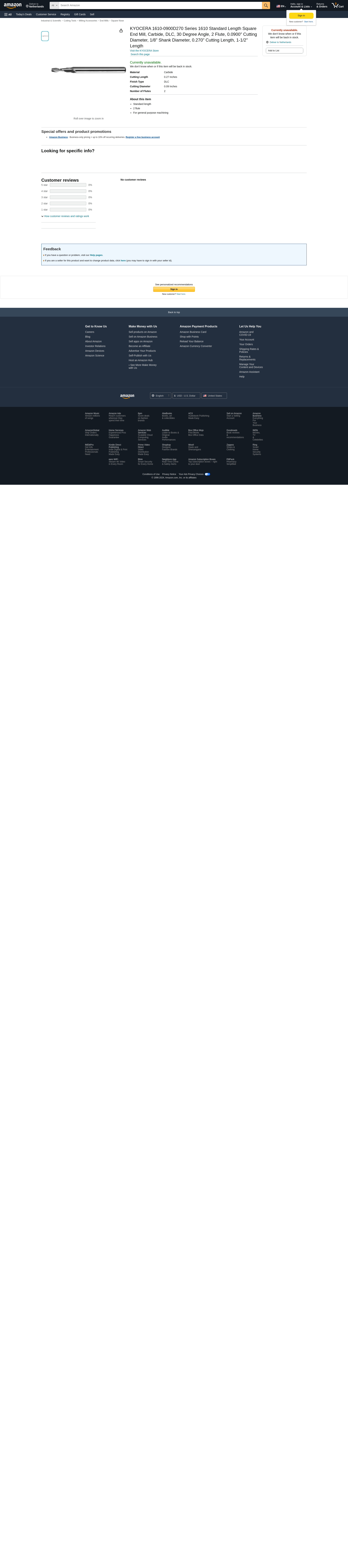 KYOCERA 1610-0900D270 Series 1610 Standard Length Square End Mill, Carbide, DLC, 30 Degree Angle, 2 Flute, 0.0900" Cutting Diameter, 1/8" Shank Diameter, 0.270" Cutting Length, 1-1/2" Length