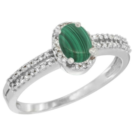 14K White Gold Natural Malachite Ring Oval 6x4mm Diamond Accent, sizes 5-10