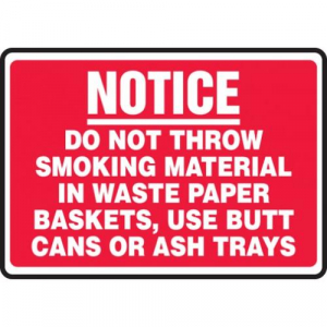 Do Not Throw Smoking Material In Waste Paper Baskets. Use Butt Cans Or Ash Trays 10" x 14" - MSMK418XF - Jendco Safety Supply