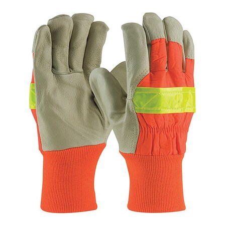 PIP 125-448/M Top Grain Pigskin Leather Palm Glove with Hi-Vis Nylon Back and 3M Thinsulate Liner, Knit Wrist
