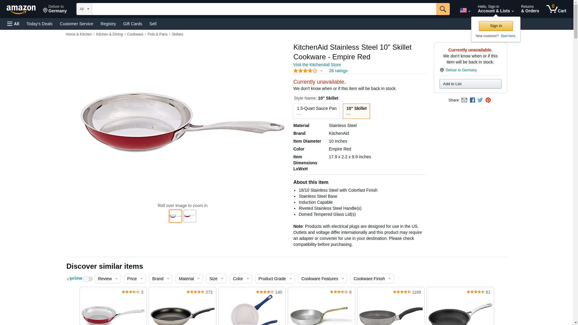 KitchenAid KCS08SKER Stainless Steel 8" Skillet Cookware - Empire Red. 18/10 Stainless Steel with Colorfast Finish. S...