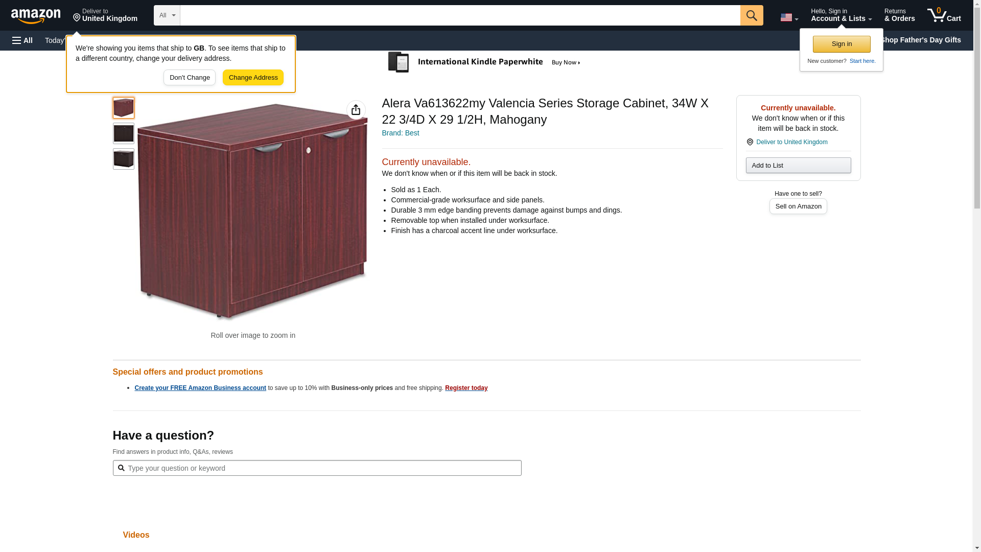 Alera VA613622MY Valencia Series Storage Cabinet, 34w X 22 3/4d X 29 1/2h, Mahogany