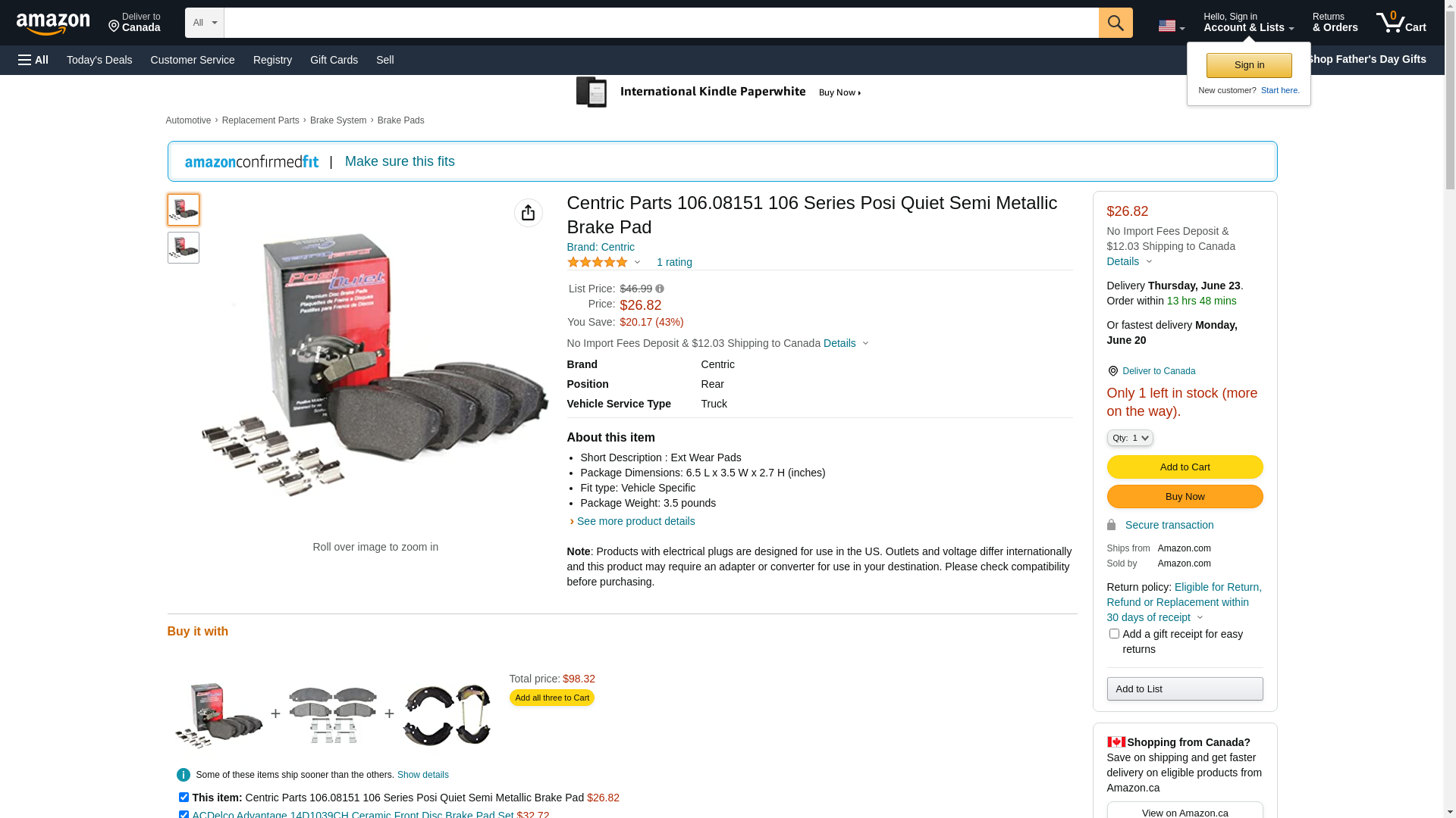 ![]() StockWise Auto | CEN-106.08151 | 1 | 1 | 1 @ $25.86 | |