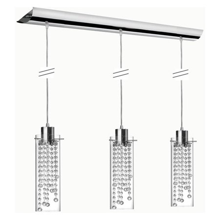 90623P-PC -Finish: Polished chrome. -Distressed: No. -Number of Lights: 3. -Bulb Type: GU10 halogen. -Plug-In: No. -Chain or Rod Length: 48.