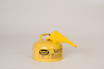 These Eagle Safety Cans hold up to 2 gallons for safely carrying and storing gasoline and flammable liquidsThe safety cans are constructed from galvanized steel and feature a flame arrestor in the pour and fill spoutsThe Eagle Safety Cans have a powder coated paint finish for added durability,,Available in three colors; red for gasoline,yellow for diesel,and blue for kerosene,,Optional ABS plastic funnel available for easier dispensing.