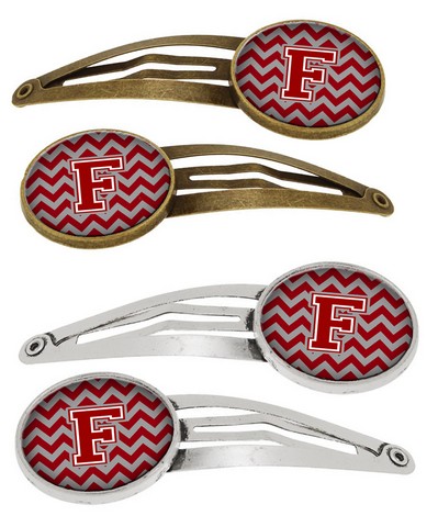 Carolines Treasures CJ1049-FHCS4 Letter F Chevron Maroon & White Barrettes Hair Clips, 0.75 x 0.25 x 2.25 in.