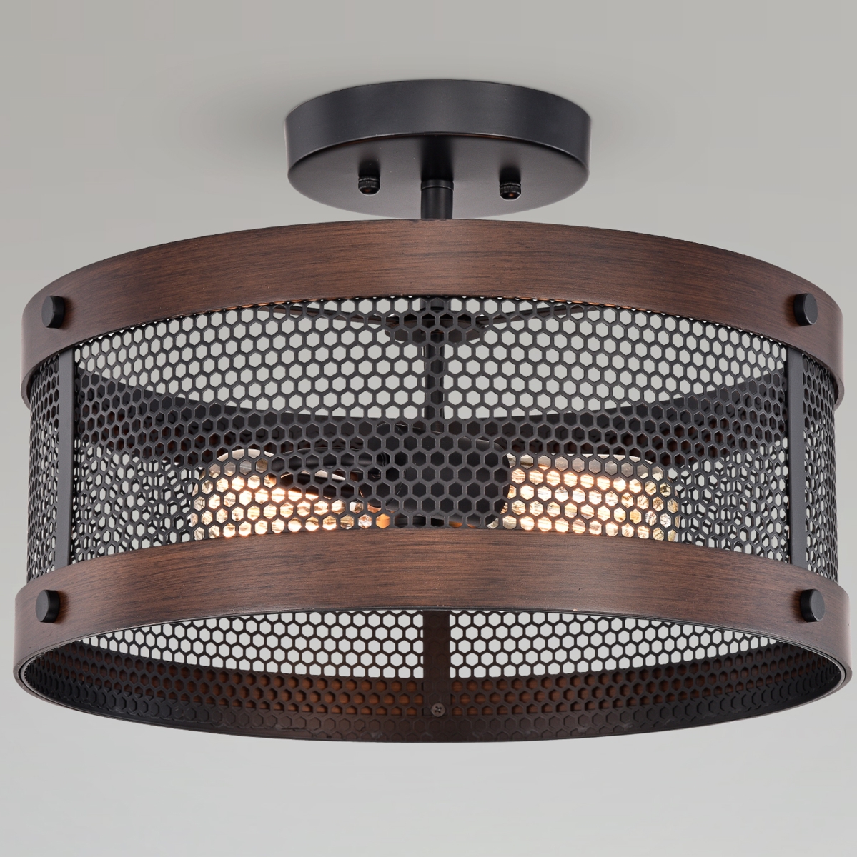 Warehouse of Tiffany CM209-2BWG Vannita Drum Chandelier 2-Light Semi-Flush Mount, Matte Black Plus Imitation Wood Gr