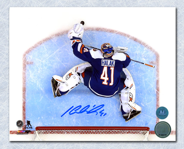 AJ SportsWorld HALJ11502B Jaroslav Halak New York Islanders Autographed Crease Overhead 8 x 10 Photo